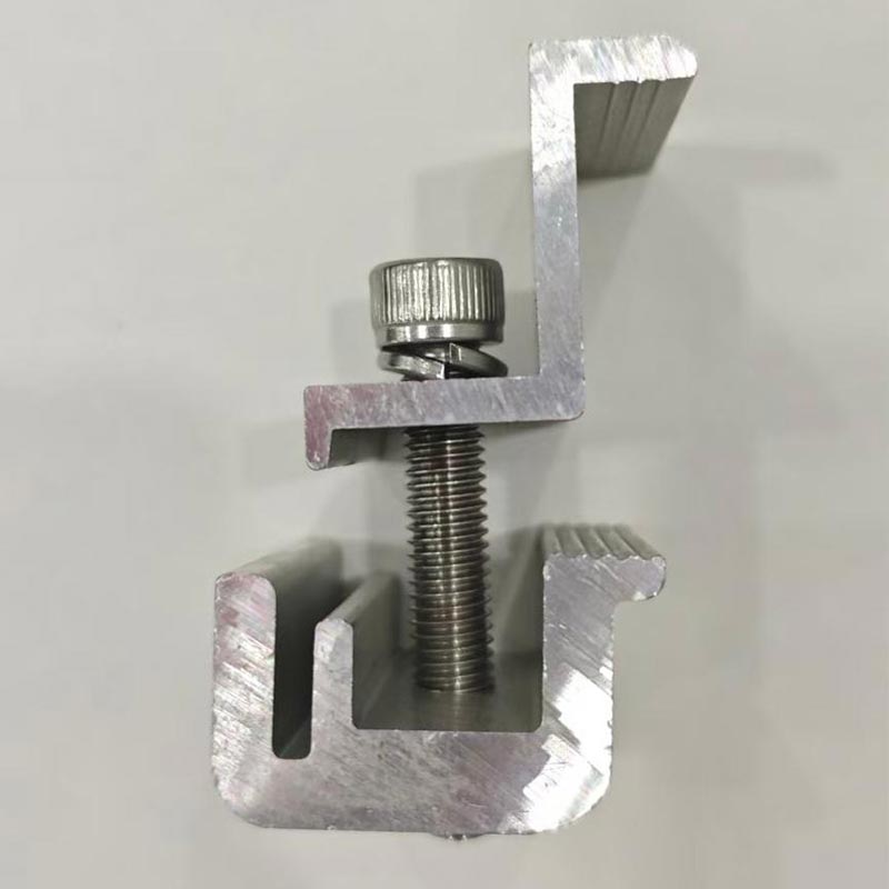नो ड्रिल सोलर एंड क्लॅम्प क्लॅम्प आणि बोल्ट एकत्र करून सोलर पॅनलच्या कडांना घट्टपणे सुरक्षित करण्यासाठी चालते.